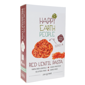 Happy Earth People Red Lentil Fusilli is made from nothing but 100% red lentils and offers almost 24 grams of protein and plenty of fiber.