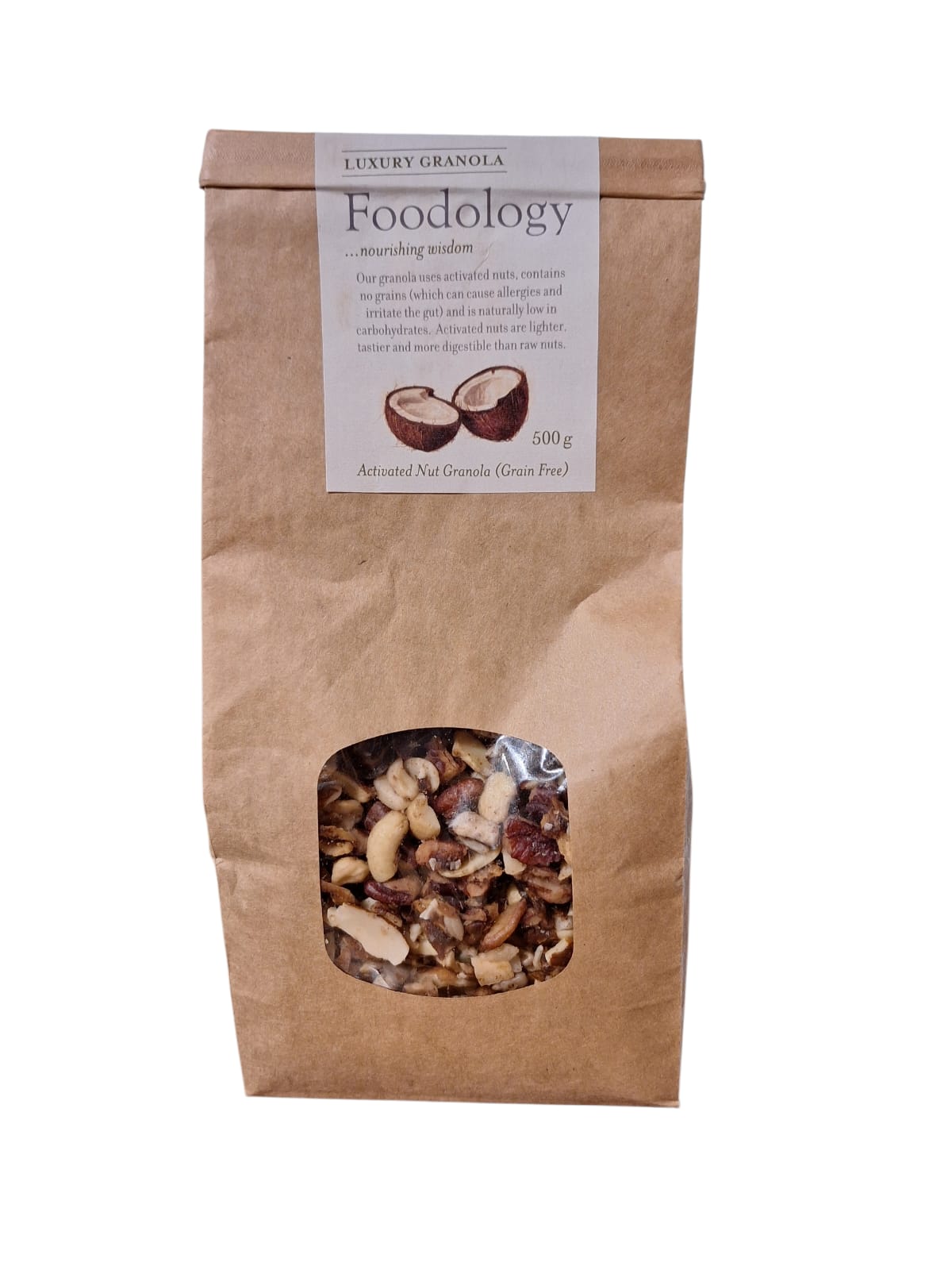 Foodology Luxury Granola (500 g) comes from a South African whole-food brand focused on gut health and wholesome nutrition. The product was developed by a gut-health nutritionist, who crafted the granola around the idea of “food as medicine”, using high-quality, activated nuts and natural sweeteners to support digestion and well-being rather than relying on grains or processed sugars. Its creation reflects a broader mission to offer nutritious, easily digestible breakfast and snack options rooted in whole foods and digestive health principles rather than mass-market cereal formulations.
