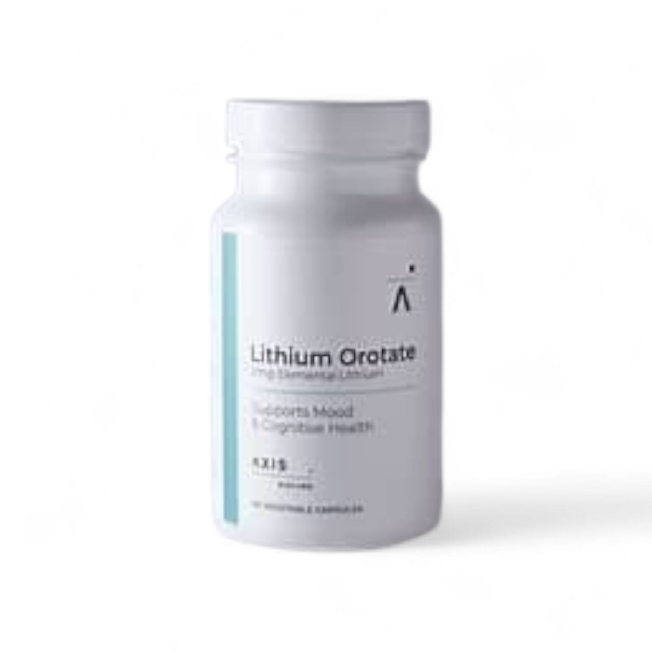 AXIS BioLabs Lithium Orotate 5mg 60 Vegicaps is a dietary trace-mineral supplement providing 5 mg of elemental lithium per vegetarian capsule. It is typically used to support mood balance, emotional well-being, and cognitive function at a much lower dose than prescription lithium medications. The lithium is bound to orotic acid to assist absorption. It is generally taken once daily with food. This product is a supplement, not a medicine, and individuals who are pregnant, under 18, have kidney or thyroid conditions, or take psychiatric or other medications should consult a healthcare professional before use.
