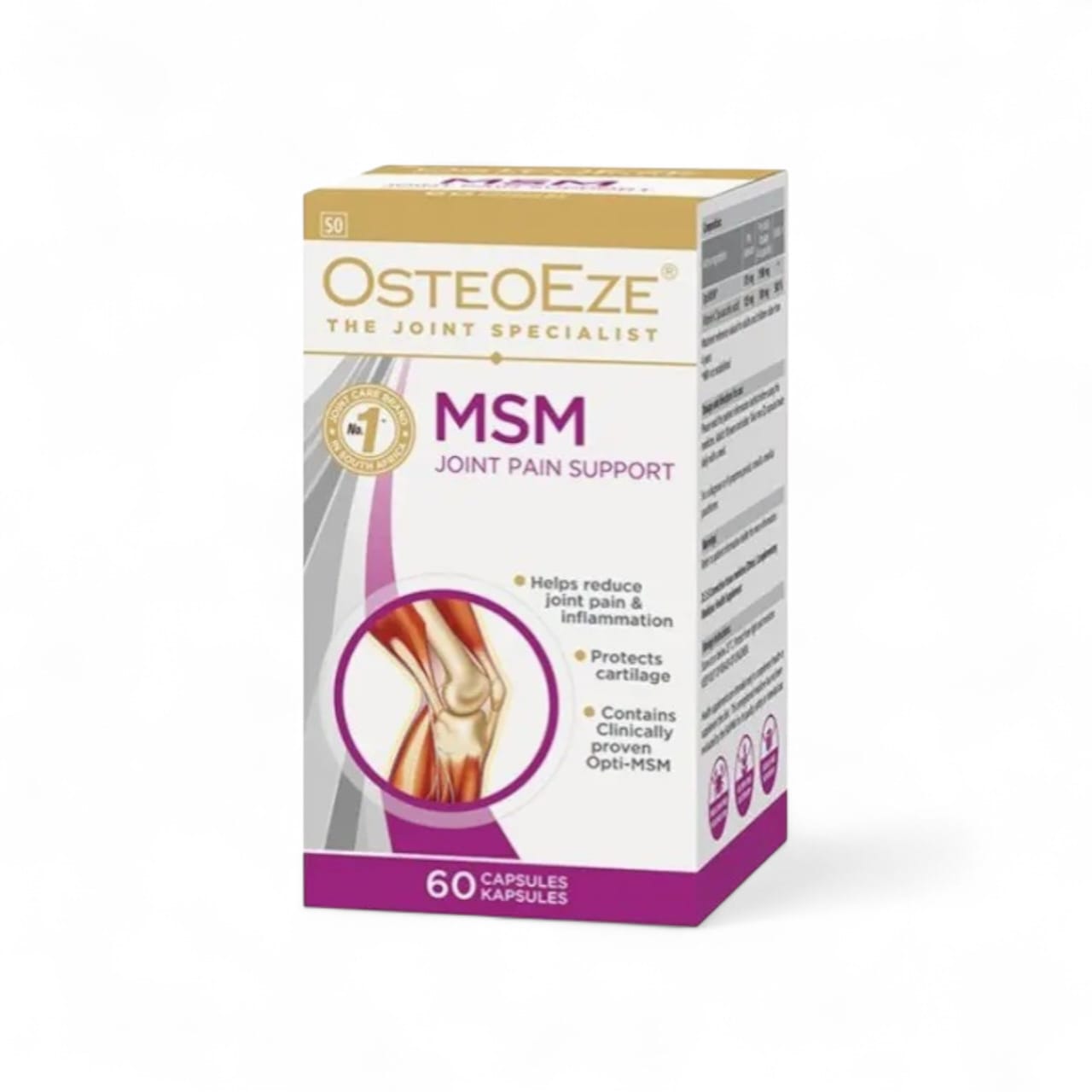 Osteoeze MSM (60 Caps) is a dietary supplement that contains methylsulfonylmethane (MSM), a natural sulfur compound. MSM is commonly used to help support joint comfort, flexibility, and mobility, especially if you experience stiffness after activity or normal wear and tear. It may also help maintain healthy connective tissues like cartilage and tendons. Taken daily as directed, this easy-to-take capsule formula is designed for people looking for natural support for joints and musculoskeletal wellness.