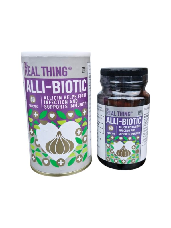• What we put in it. Just pure, allicin. Unlike many other garlic supplements, The Real Thing Alli-Biotic contains allicin itself and not just its precursors alliin and allinase.