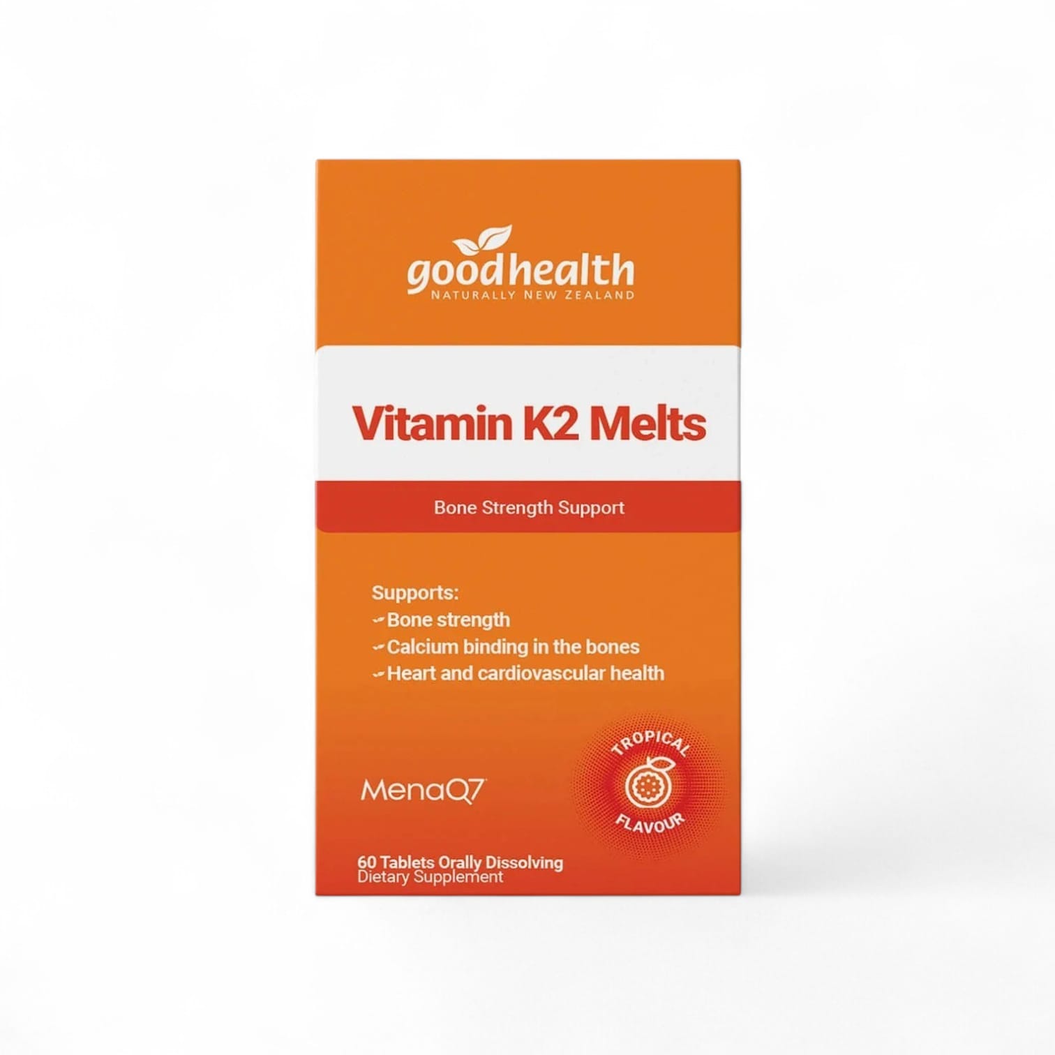 Vitamin K2 Melts (60 Tablets) is a convenient, fast-dissolving supplement that provides vitamin K2 in the highly absorbable MK-7 form to support bone and cardiovascular health. It works by helping direct calcium into bones and teeth while preventing buildup in arteries and soft tissues, promoting proper calcium balance in the body. The melt-in-the-mouth format makes it easy to take without water, offering a simple daily solution for maintaining strong bones and overall heart health.